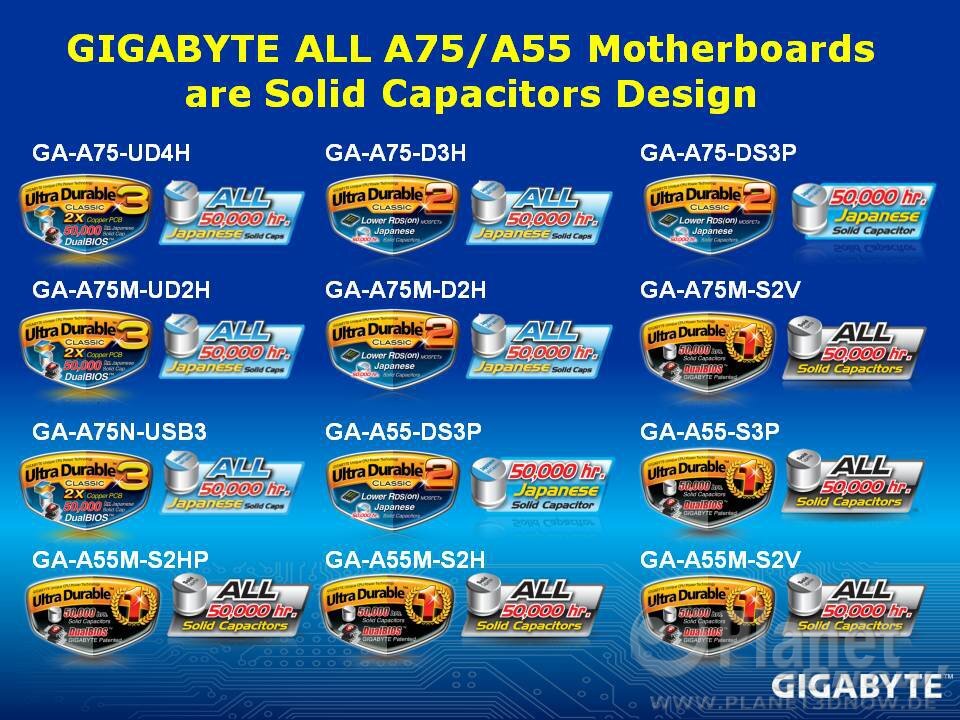 Wir kamen beim Zählen auf ganze zwölf Mainboards, die alle über Feststoffkondensatoren verfügen sollen und auf AMDs A75 oder A55 aufbauen. In den nächsten Tagen dürften wir mit mehreren solcher Produktankündigungen verschiedener Hersteller beglückt werden. Alle weiteren der 36 Bilder zu der heutigen findet ihr wie üblich in unserer Galerie.