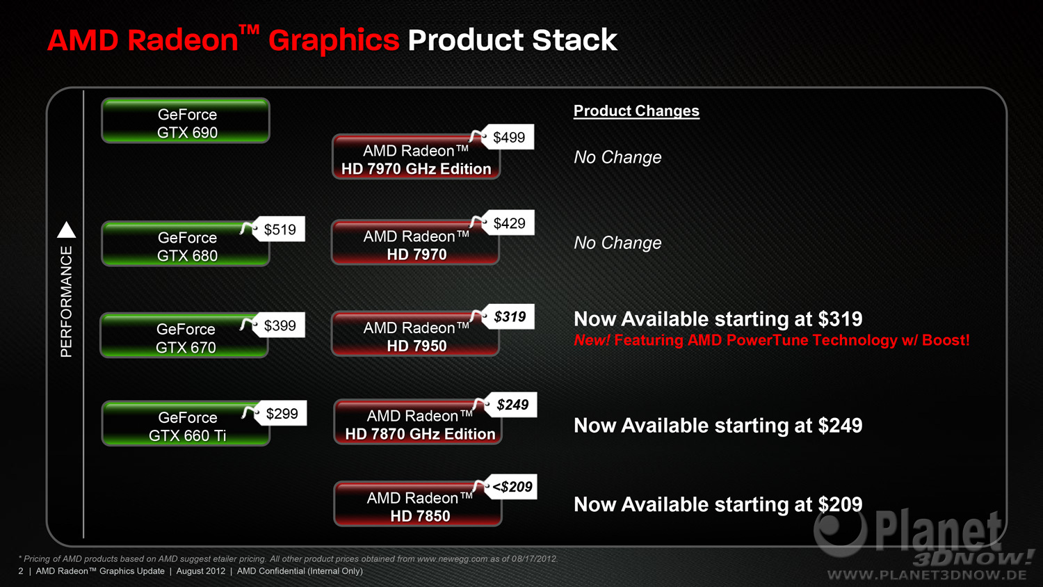 Die Kollegen von AnandTech haben von AMD eine Präsentationsfolie erhalten, welche die neuen Preispunkte im Vergleich zur Konkurrenz verdeutlicht: