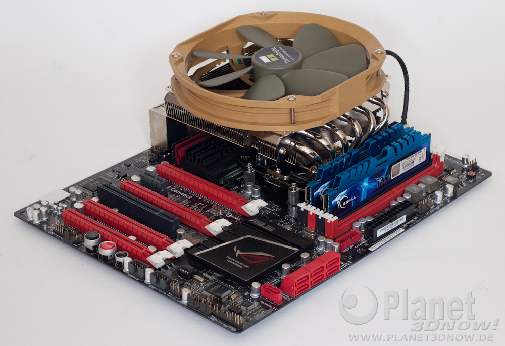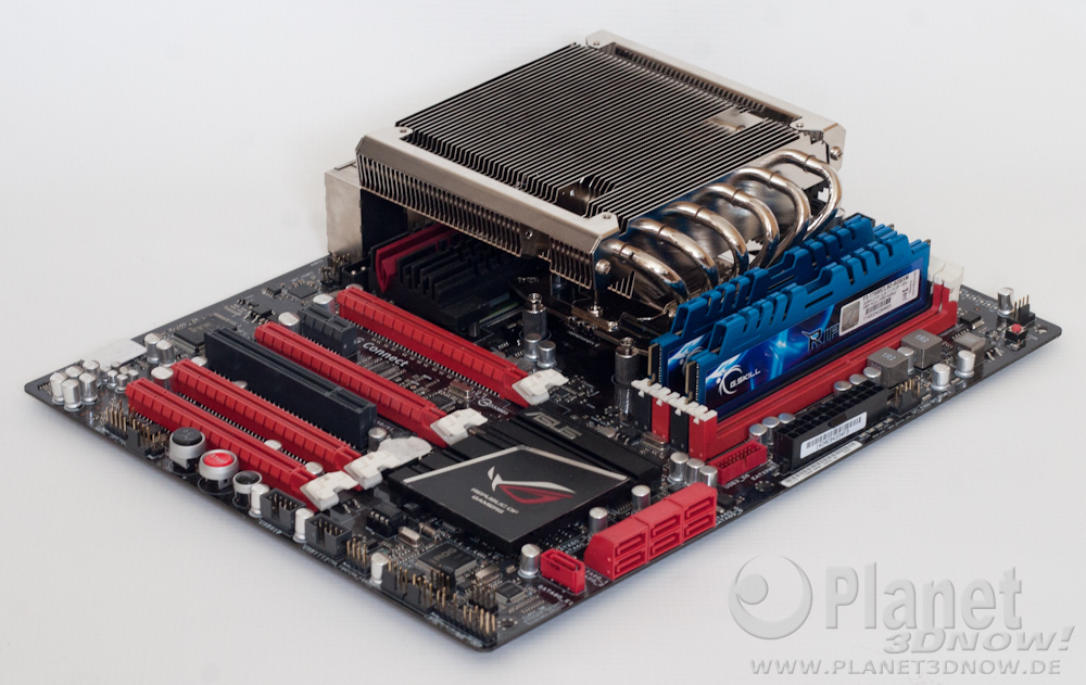 Der Thermalright AXP-200 lässt sich in 90°-Schritten bei der Montage drehen, sodass er auf jedem Mainboard passend aufgesetzt werden kann. Zusätzlich ist der Abstand zwischen Sockel und Kühlerlamellen größer als beim AXP-100, sodass auch RAM-Module mit hochstehenden Kühlkonstruktionen Platz finden können.