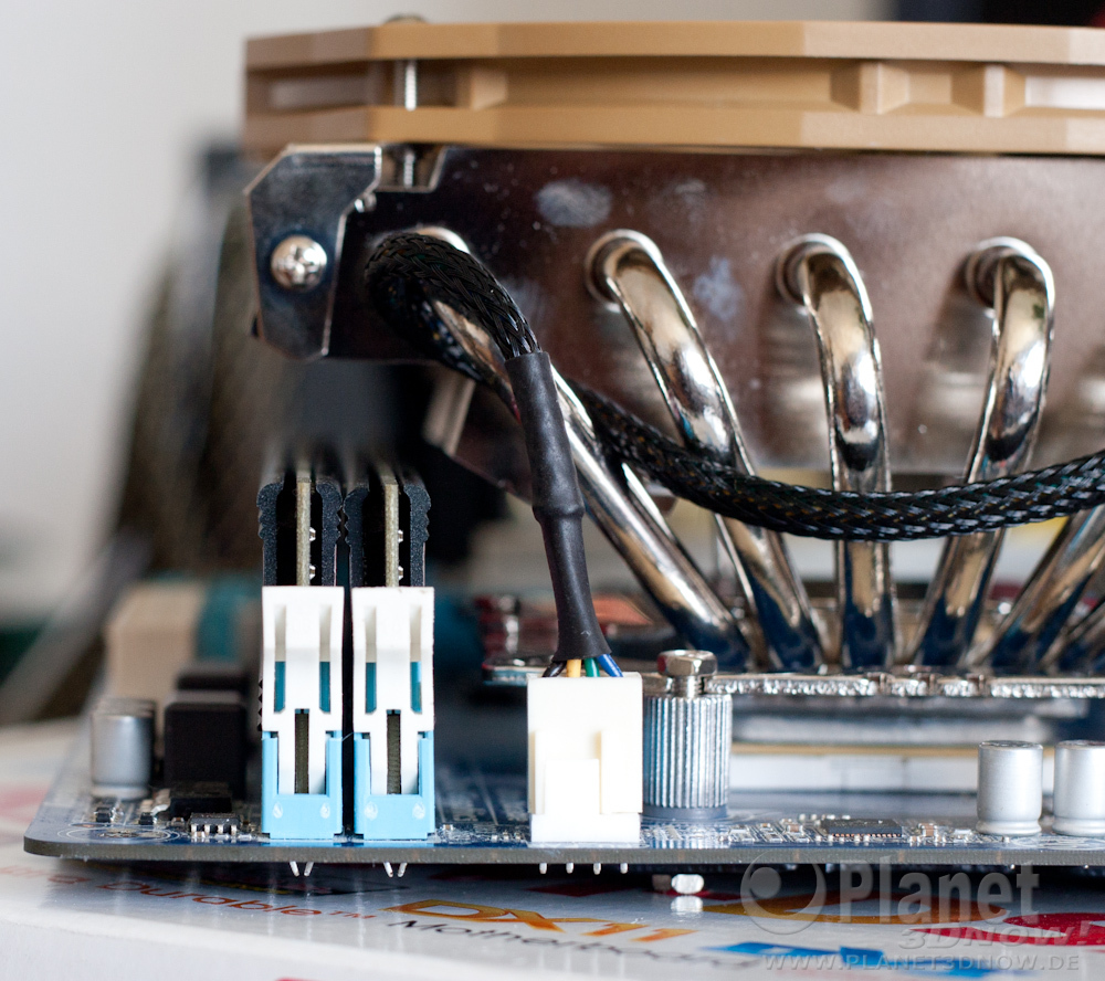 Wird der Lüfteradapter verwendet, muss dieser unter Umständen leicht verschoben werden. In bestimmten Positionen reicht ein größerer Lüfter bis hin zum ersten PCI-Express-Slot.